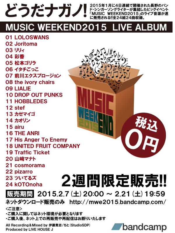 MUSIC WEEKEND2015のライブアルバムが公開になりました。